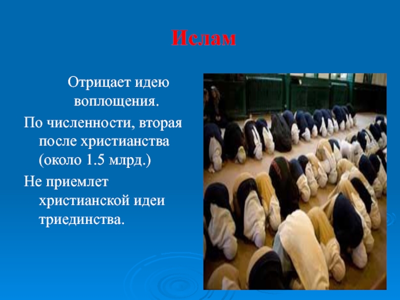 Слайд 21Исла́м (араб. إسلام — монотеистическая мировая религия. Слово «ислам» переводится как «покорность»,