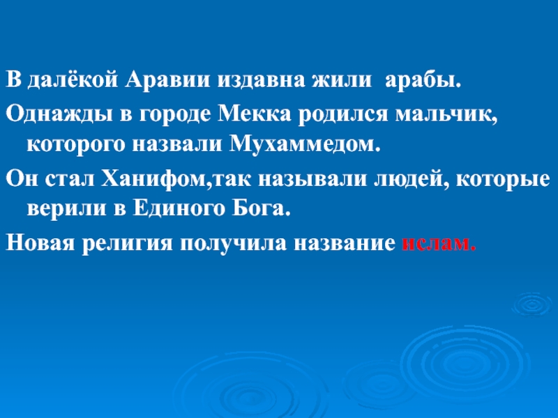 Он стал Ханифом,так называли людей, которые верили в Единого Бога.