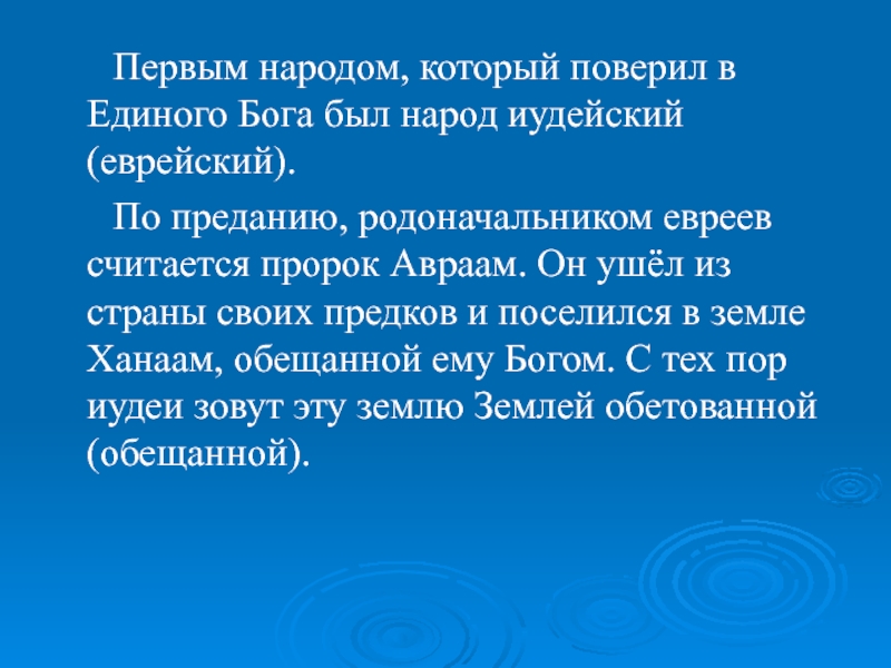 Слайд 5 Первым народом, который поверил в Единого Бога был