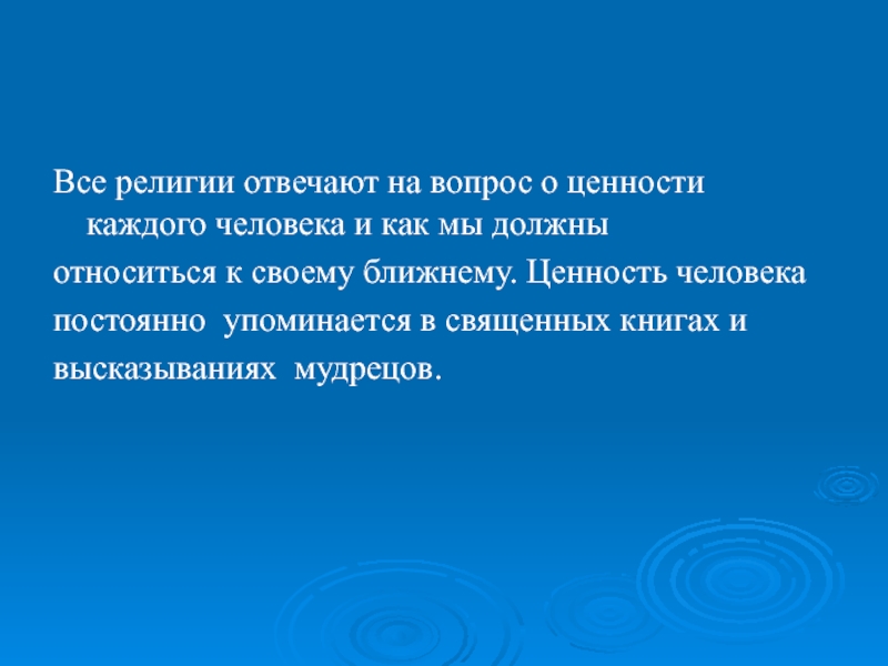 Слайд 32Все религии отвечают на вопрос о ценности каждого человека и как