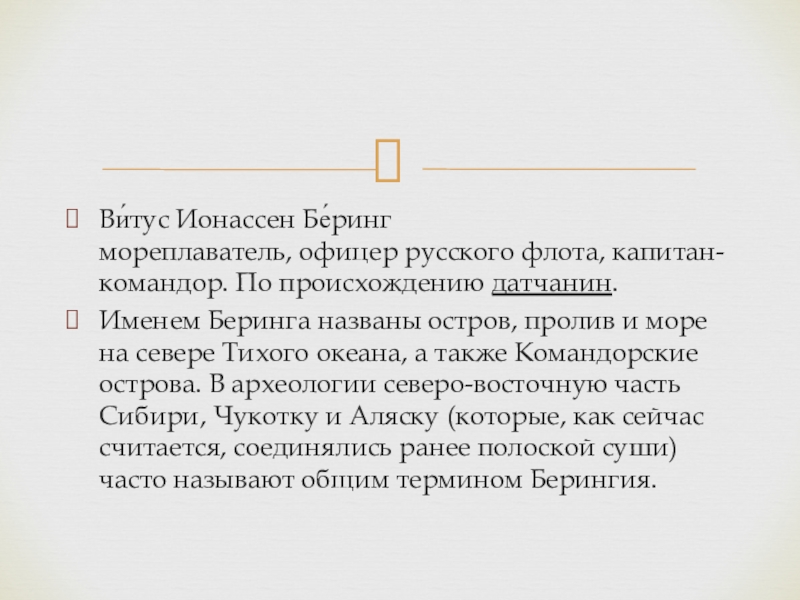 Слайд 1Ви́тус Ионассен Бе́ринг