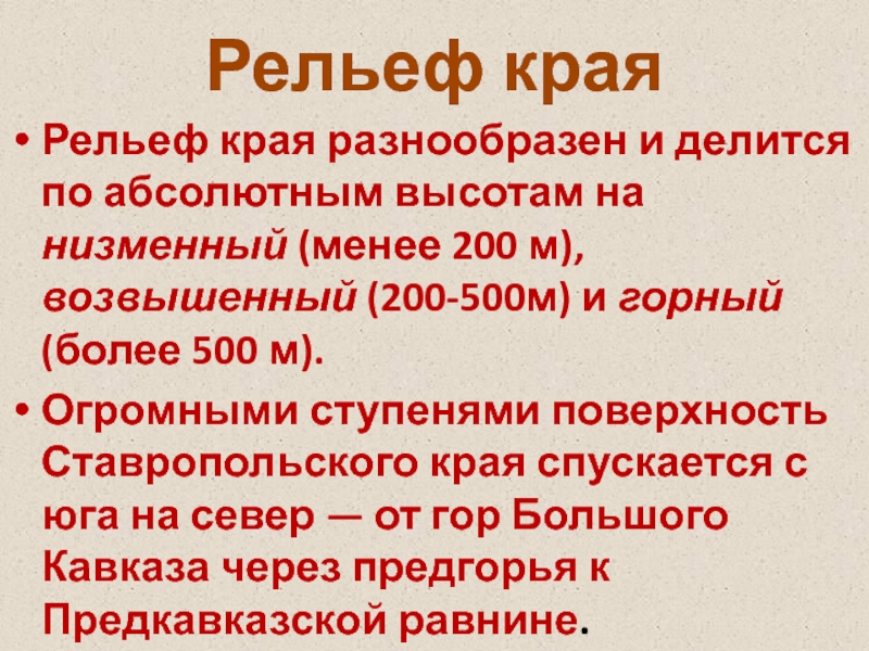 На юго-западе над территорией края возвышаются Кавказские горы, которые оказывают
