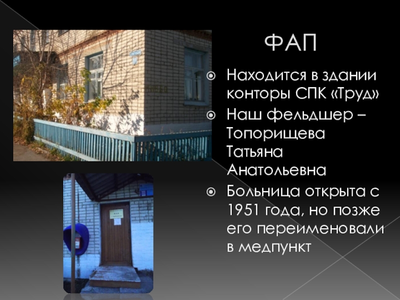 Больница открыта с 1951 года, но позже его переименовали в медпункт