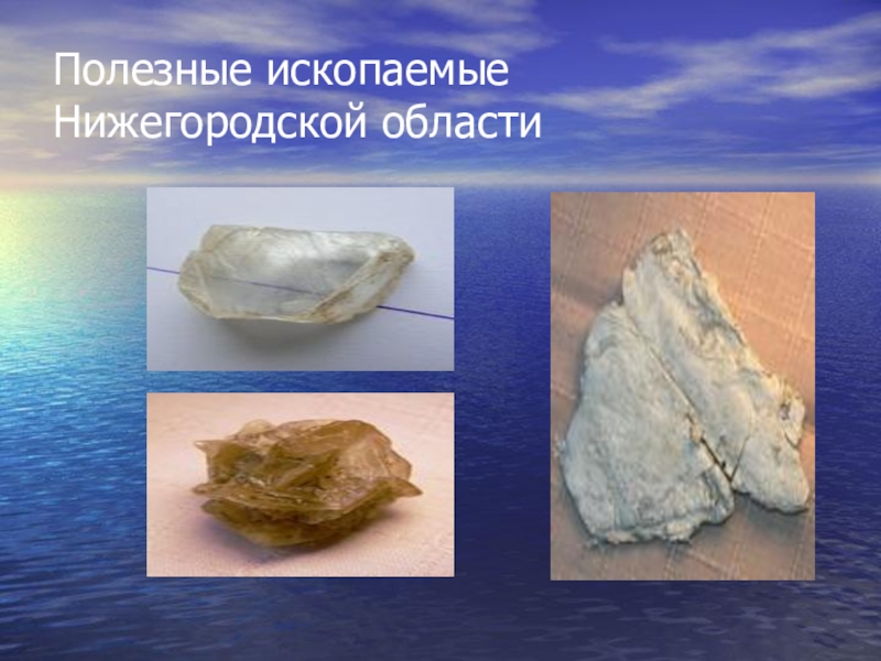 (глинисто-известковые породы), песчаника, в Нижнем Новгороде на крутых косогорах правого берега Оки. В разных районах южной части области на дне и в обнажениях глубоких оврагов встречаются окаменелые остатки морских животных - обитателей древних морей. Это разнообразные окаменелые раковины, известковые панцири моллюсков, плеченогих животных, скелеты кораллов и микроскопические скелеты простейших животных, из которых сложены известковые пласты, принадлежащие к каменноугольному и началу пермского периодов палеозойской эры, когда на территории современной области простирались теплые моря.