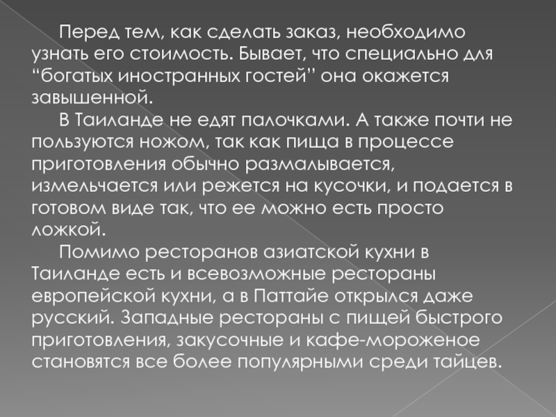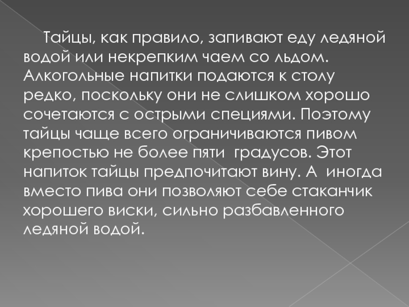 Слайд 77Тайцы, как правило, запивают еду ледяной водой или некрепким чаем со