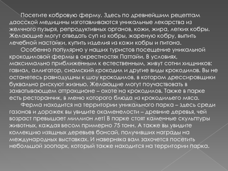 Слайд 49Посетите кобровую ферму. Здесь по древнейшим рецептам даосской медицины изготавливаются уникальные