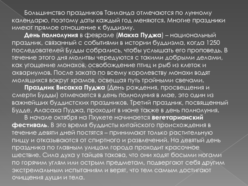 Слайд 63Большинство праздников Таиланда отмечаются по лунному календарю, поэтому даты каждый год