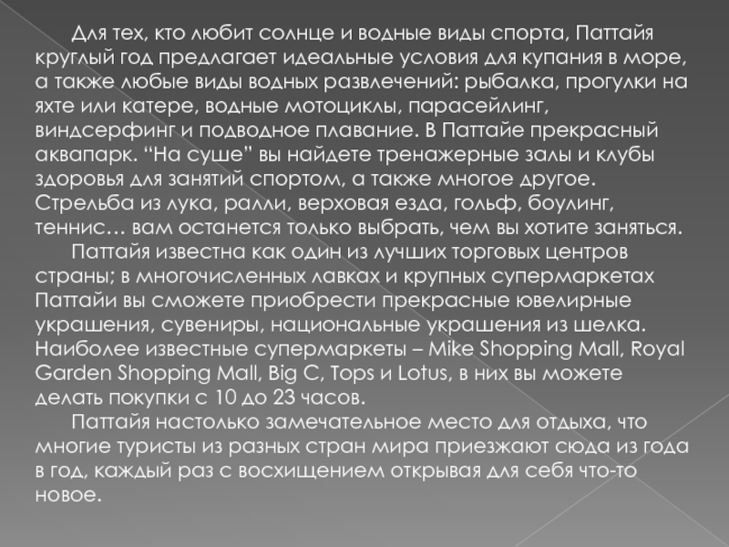Слайд 55Для тех, кто любит солнце и водные виды спорта, Паттайя круглый