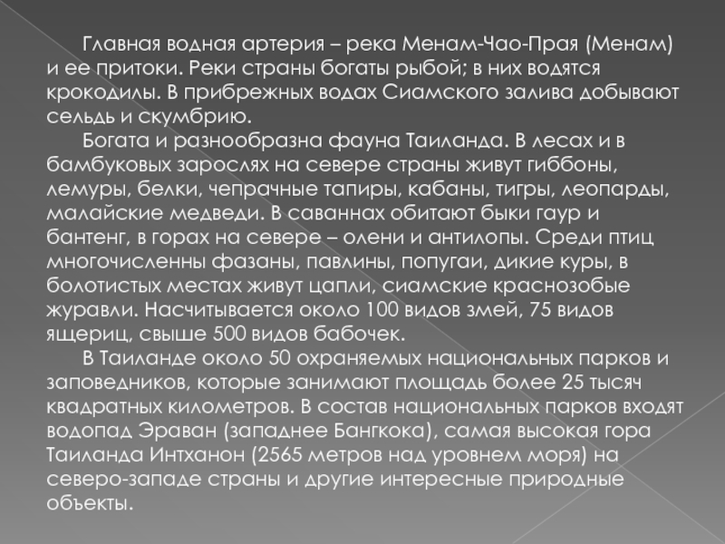 Слайд 18Главная водная артерия – река Менам-Чао-Прая (Менам) и ее притоки. Реки