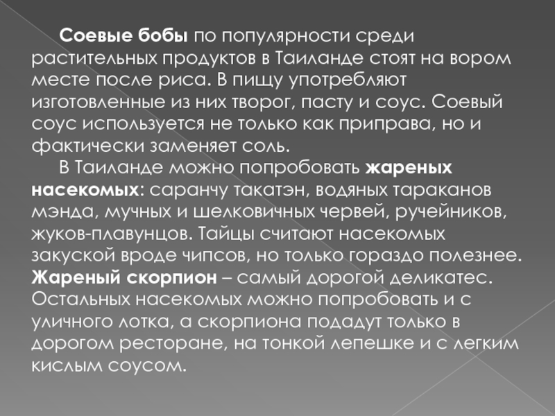 Слайд 74Соевые бобы по популярности среди растительных продуктов в Таиланде стоят на