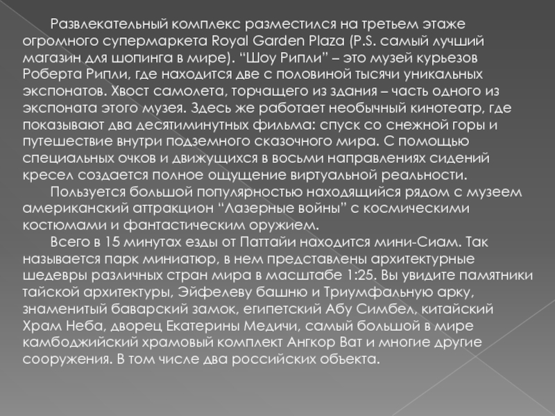 Слайд 43Развлекательный комплекс разместился на третьем этаже огромного супермаркета Royal Garden Plaza