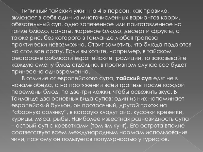 Слайд 71Типичный тайский ужин на 4-5 персон, как правило, включает в себя