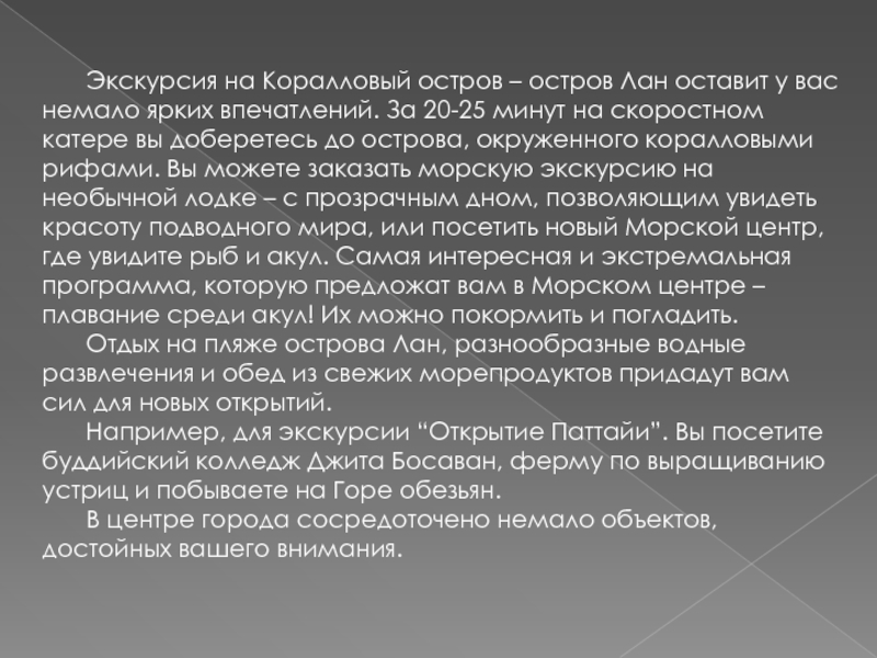 Слайд 41Экскурсия на Коралловый остров – остров Лан оставит у вас немало