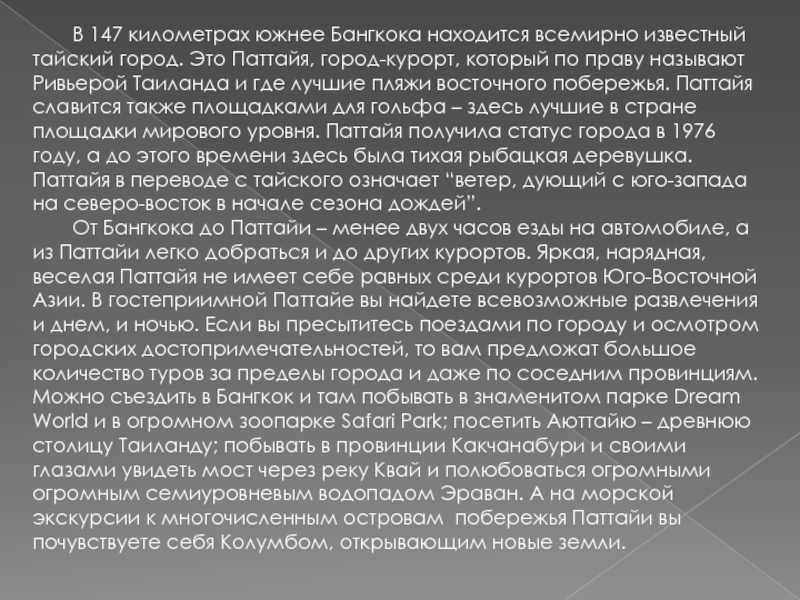 Слайд 40В 147 километрах южнее Бангкока находится всемирно известный тайский город. Это