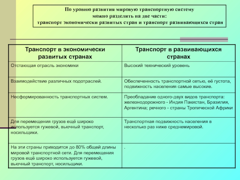 мира? Как вы думаете, чем объяснить такие различия в участии транспорта в обороте?