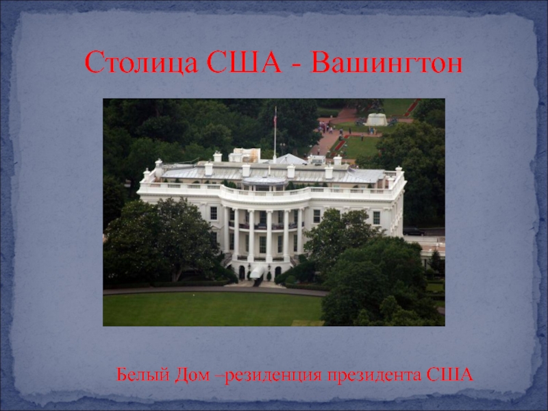 Белый Дом –резиденция президента СШАСтолица США - Вашингтон