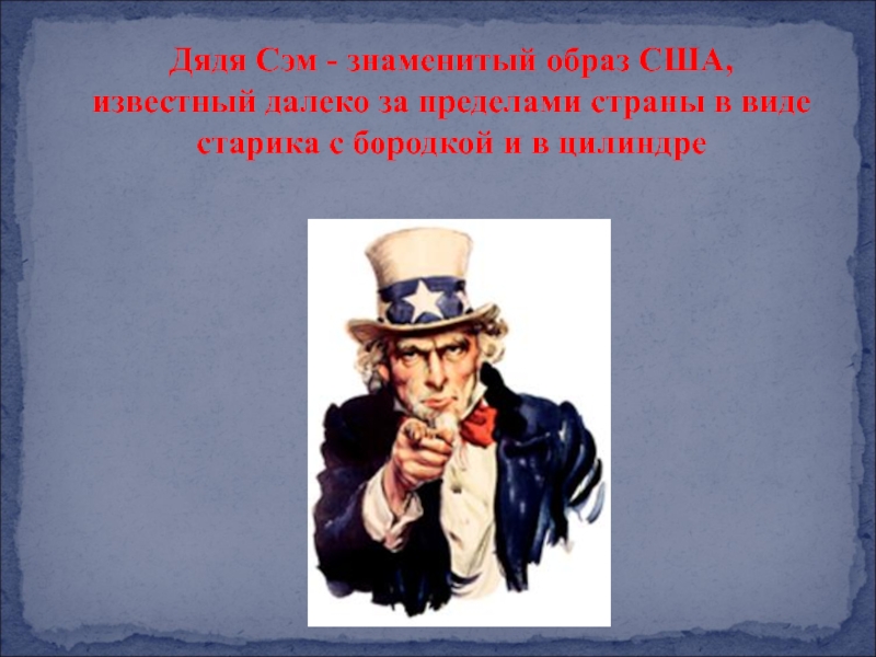 Дядя Сэм - знаменитый образ США, известный далеко за пределами страны в виде старика с бородкой и в