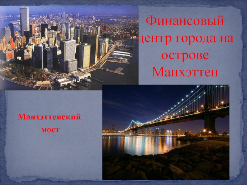 Манхэттенский мостФинансовый центр города на острове Манхэттен