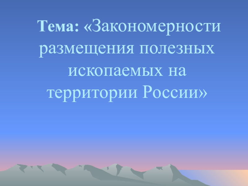 Слайд 1 Тема: «Закономерности размещения полезных ископаемых на территории России»