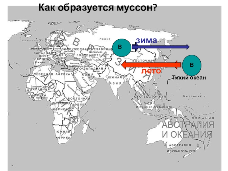 Муссон – устойчивые ветры над определёнными областями Земли, дующие летом с океана на сушу, а зимой наоборот.