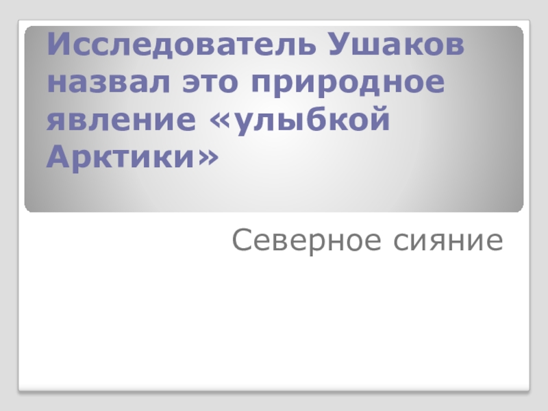 Слайд 8Исследователь Ушаков назвал это природное явление «улыбкой Арктики»