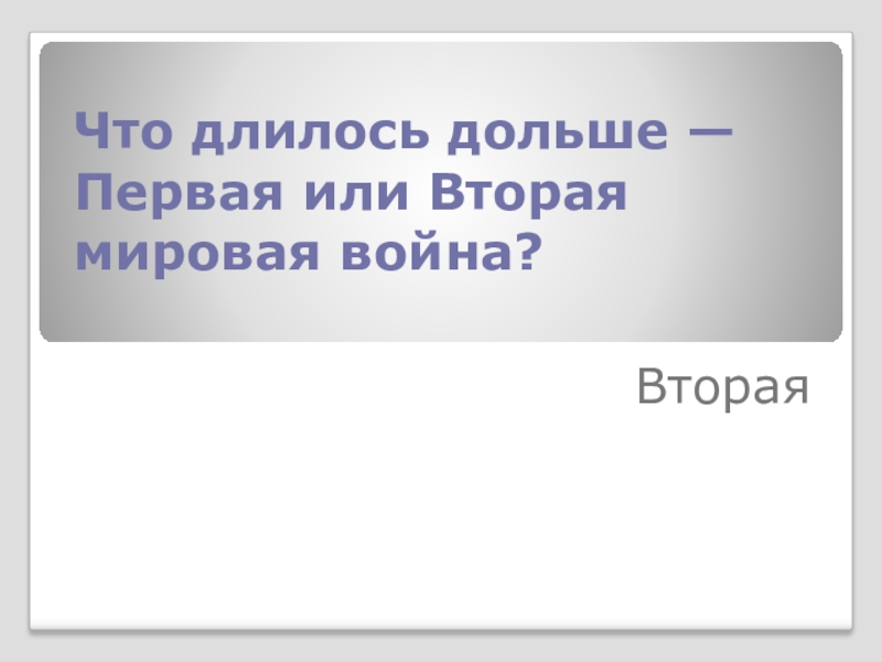 Слайд 31Что длилось дольше — Первая или Вторая мировая война?
