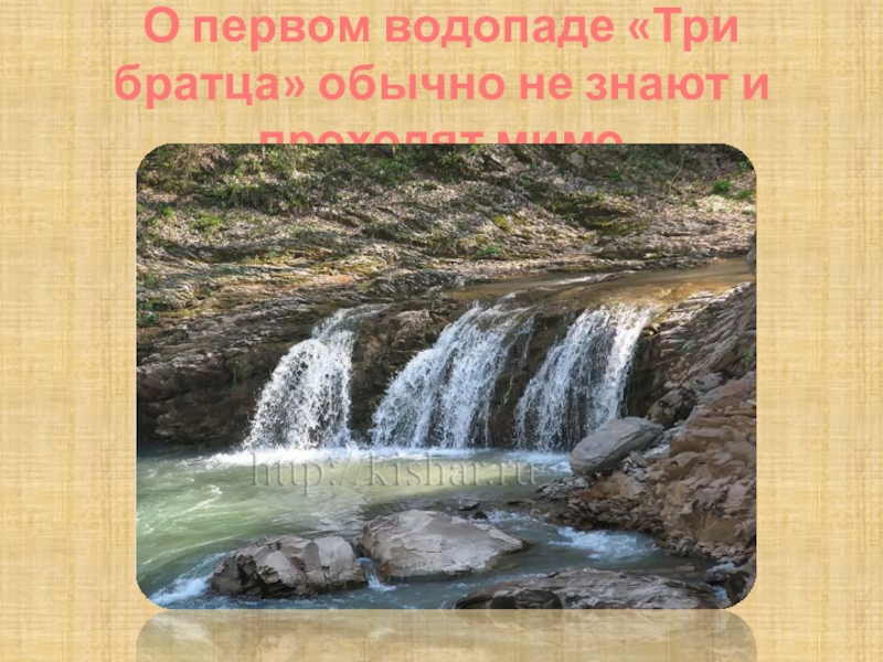Слайд 5О первом водопаде «Три братца» обычно не знают и проходят мимо