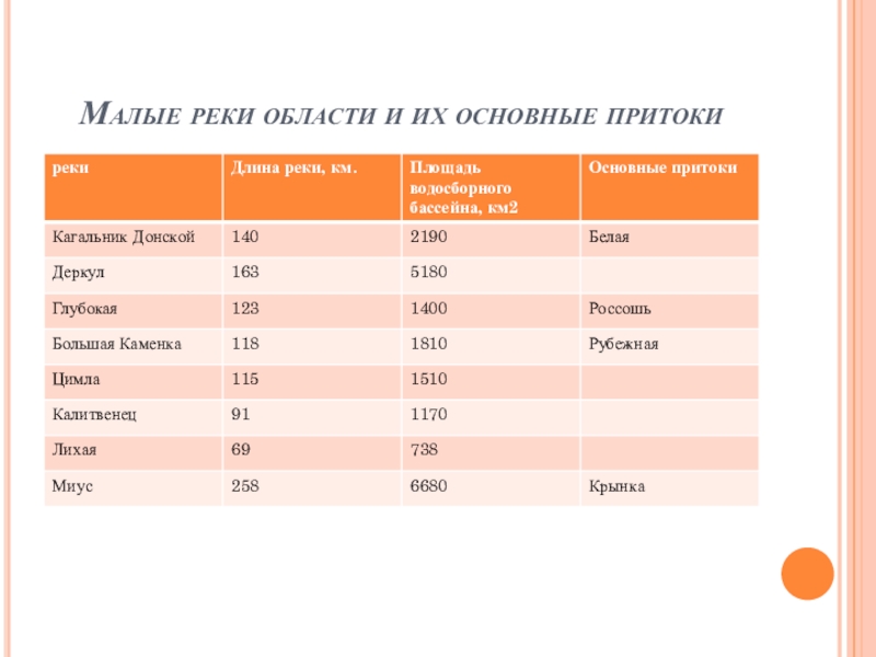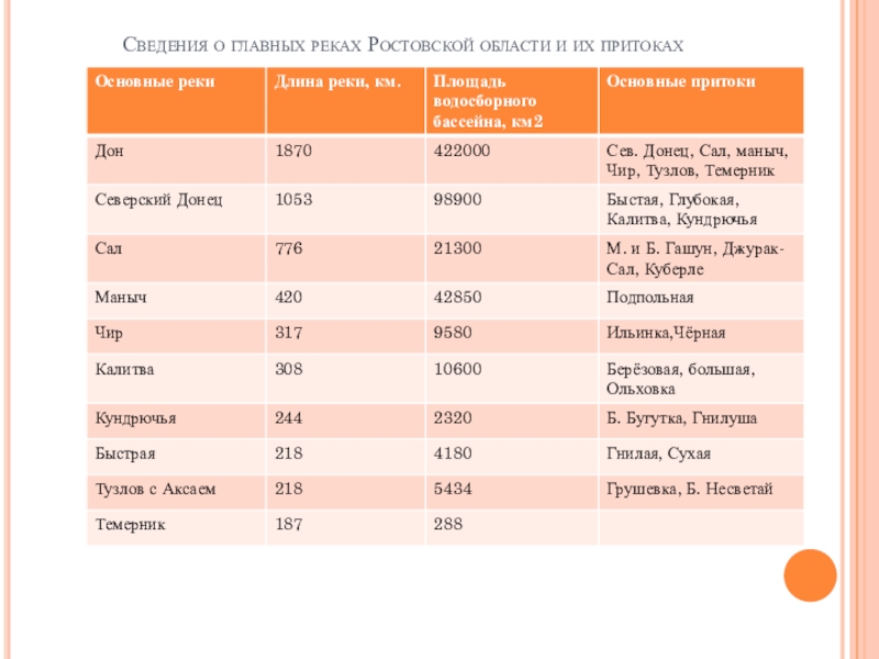 Слайд 7Сведения о главных реках Ростовской области и их притоках