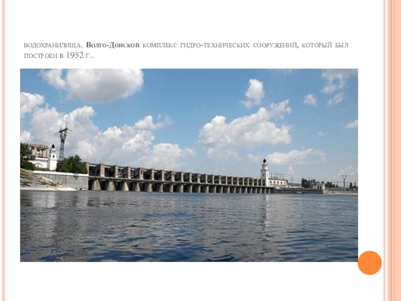 Слайд 17водохранилища. Волго-Донской комплекс гидро-технических сооружений, который был построен в 1952 г..