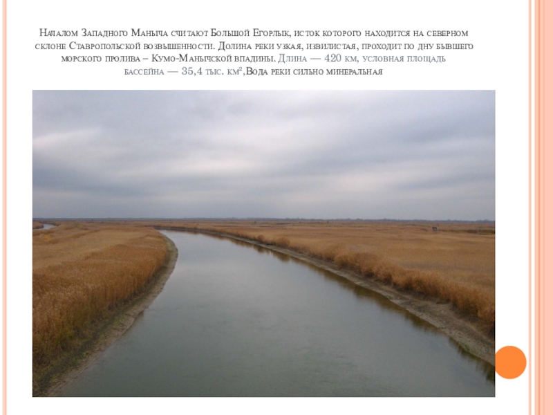 Слайд 10Началом Западного Маныча считают Большой Егорлык, исток которого находится на северном