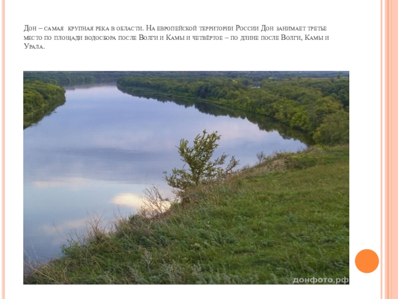 Слайд 3Дон – самая крупная река в области. На европейской территории России