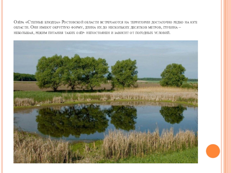 Слайд 16Озёра «Степные блюдца» Ростовской области встречаются на территории достаточно редко на
