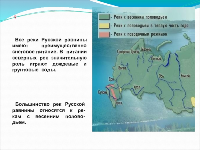 Большинство рек Русской равнины относятся к ре-кам с весенним полово-дьем.