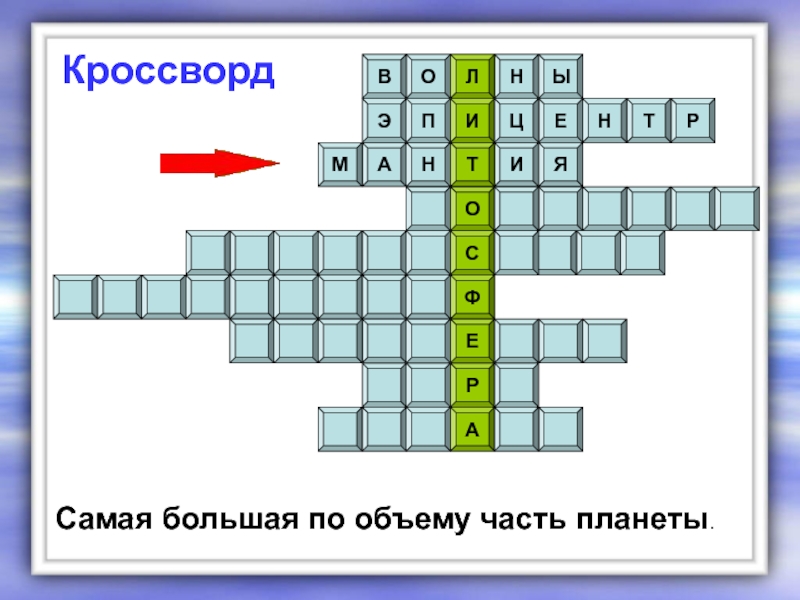 ОНЫВФРИАНСЛИТОЕРАТНЕЦЭПМЯКроссвордСамая большая по объему часть планеты.