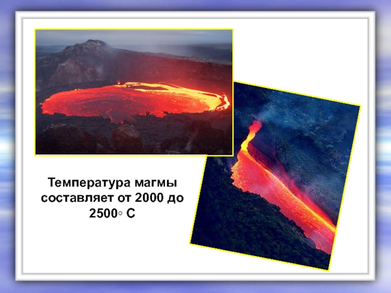 Слайд 13Температура магмы составляет от 2000 до 2500◦ С
