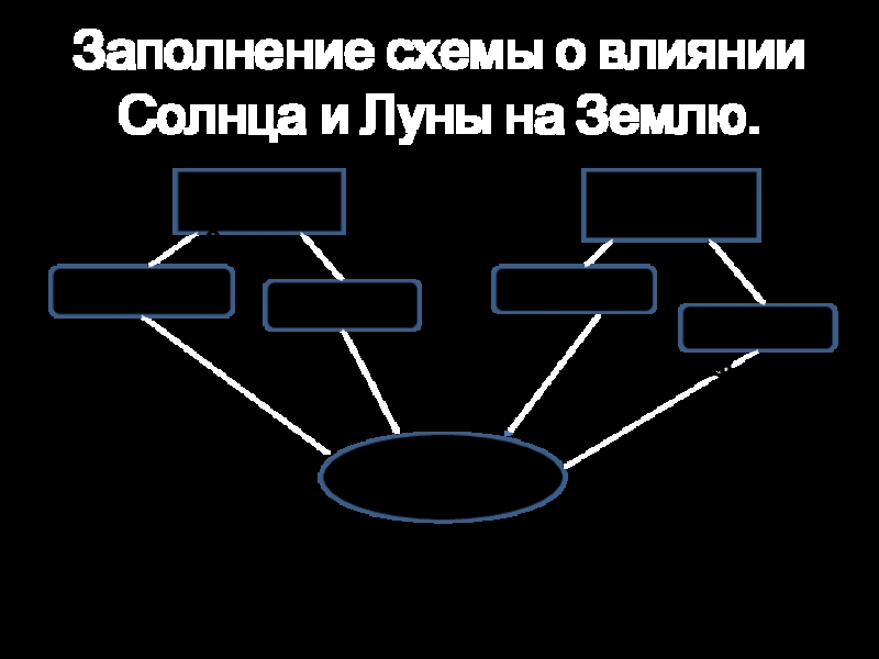 Слайд 9Заполнение схемы о влиянии Солнца и Луны на Землю.
