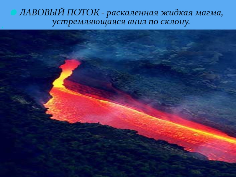 ЛАВОВЫЙ ПОТОК - раскаленная жидкая магма, устремляющаяся вниз по склону.