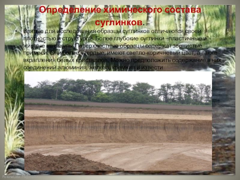 Суглинки содержат карбонаты, алюминий, железо, кремний.