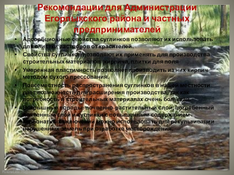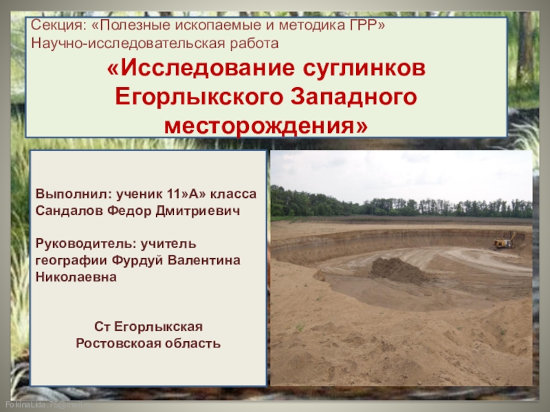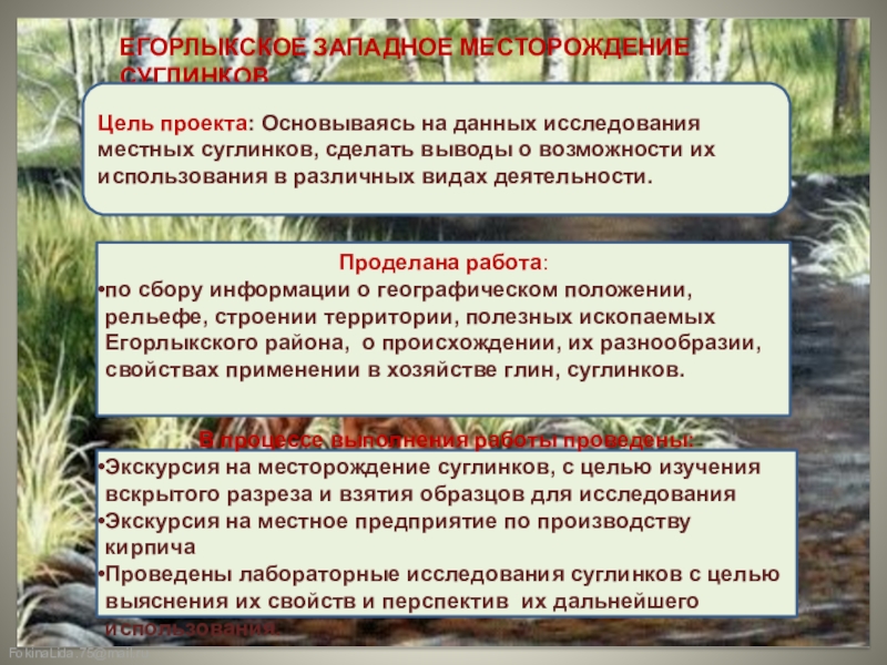 по сбору информации о географическом положении, рельефе, строении территории, полезных ископаемых Егорлыкского района, о происхождении, их разнообразии, свойствах применении в хозяйстве глин, суглинков.