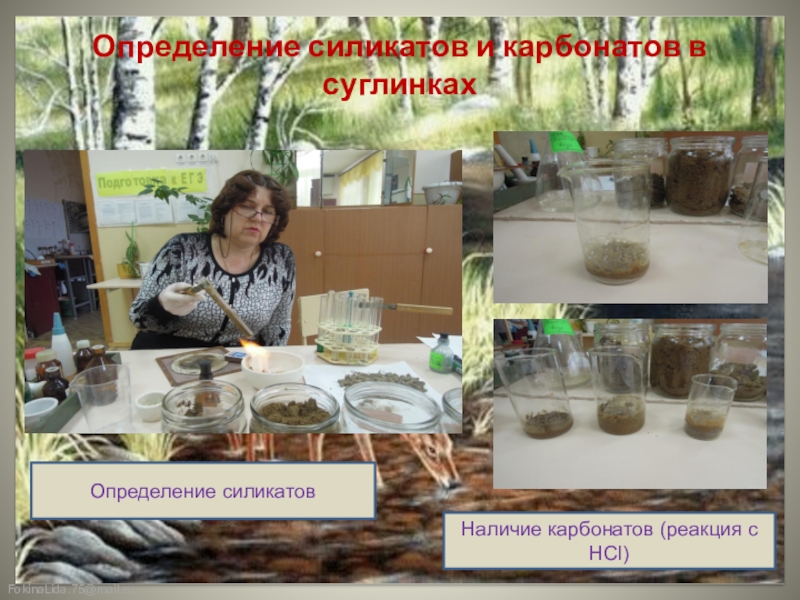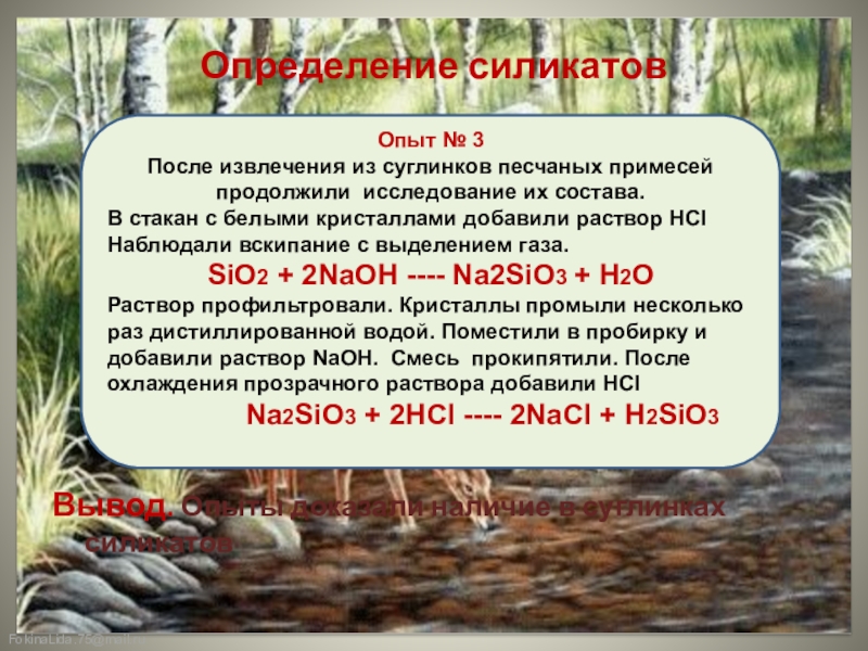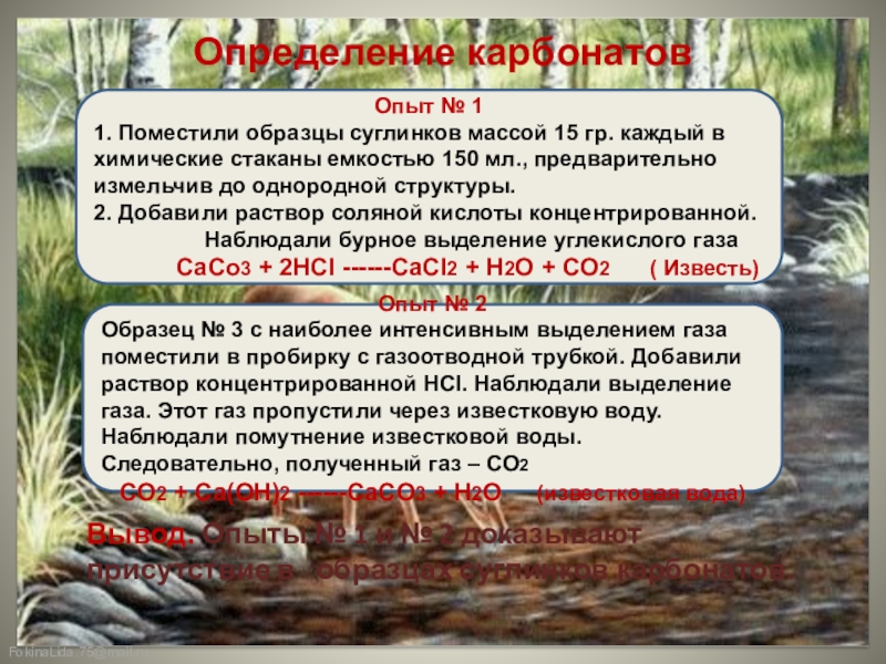 Вывод. Опыты № 1 и № 2 доказывают присутствие в образцах суглинков карбонатов.