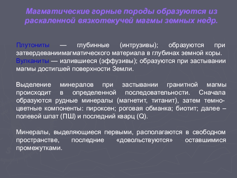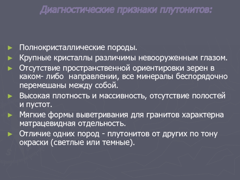 случаев совершенно не содержащие темно-цветных компонентов. Под микроскопом эти породы чаше всего имеют гранитовую или реже гранулитовую структуру.
