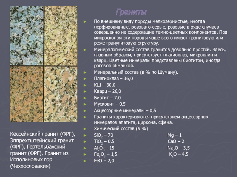 Кёссейнский гранит (ФРГ), Эппрехтштейнский гранит (ФРГ), Гертельбахский гранит (ФРГ), Гранит из Исполиновых гор (Чеххословакия)