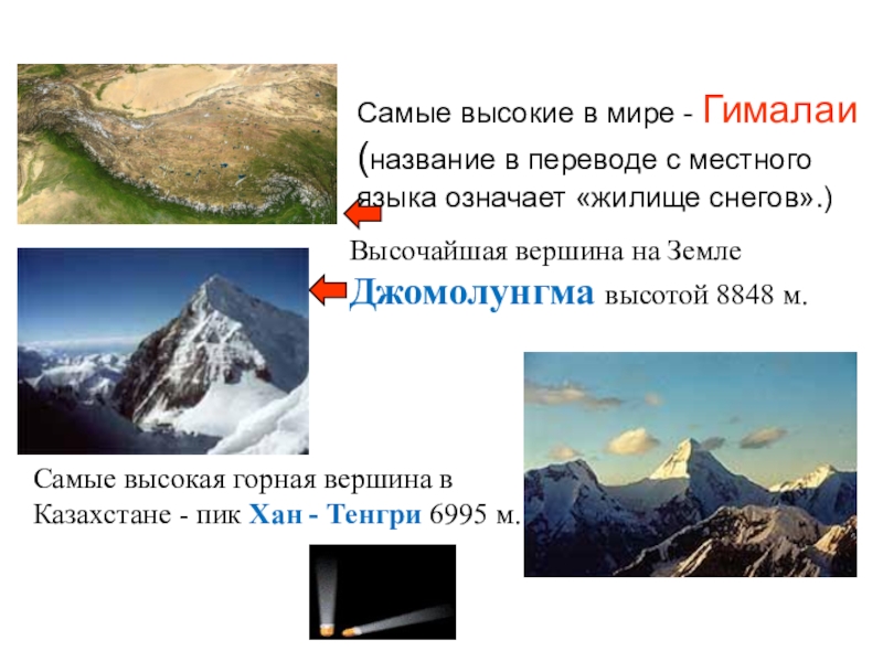 Высочайшая вершина на Земле Джомолунгма высотой 8848 м.