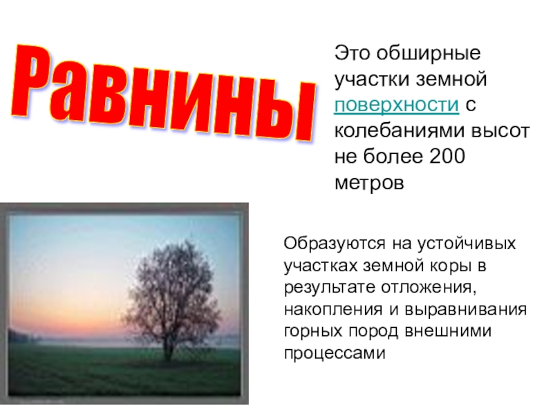 Образуются на устойчивых участках земной коры в результате отложения, накопления и выравнивания горных пород внешними процессами