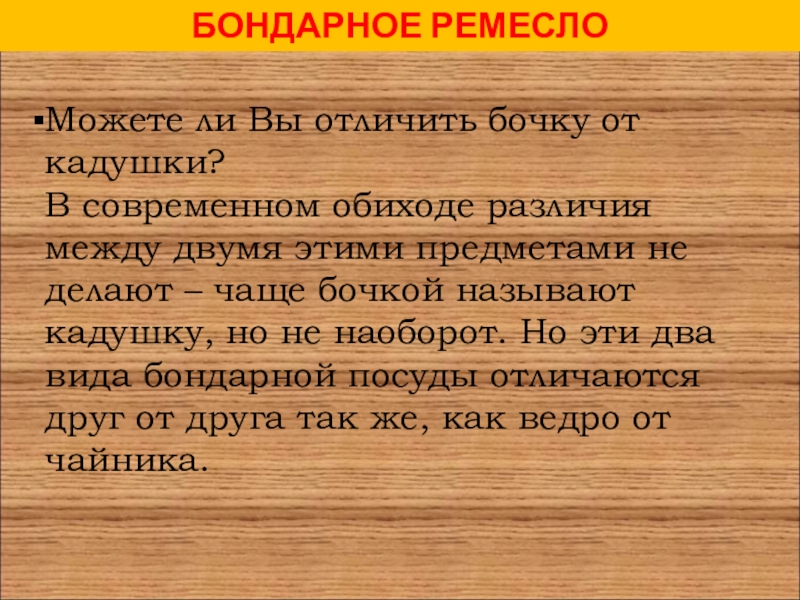 Слайд 3БОНДАРНОЕ РЕМЕСЛО
