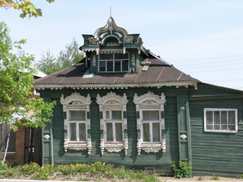 Скульптурное изображение, коня или птицы венчало гребень тесовой кровли. Делали резные ставни.
