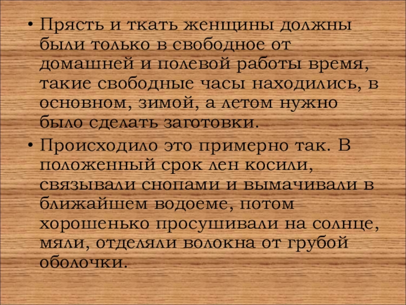Слайд 26Прясть и ткать женщины должны были только в свободное от домашней