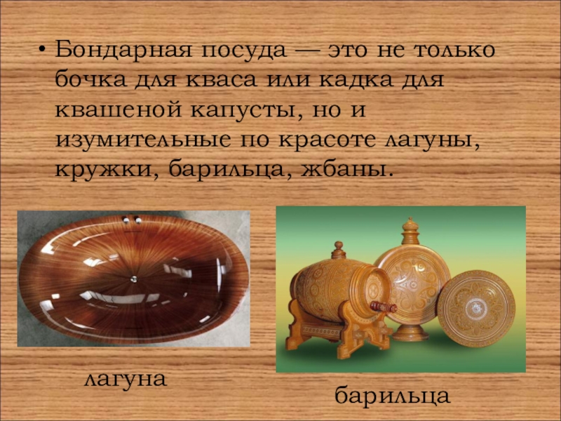 Слайд 9Бондарная посуда — это не только бочка для кваса или кадка