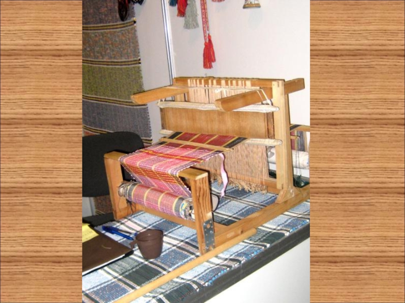 Устройство было достаточно простым: на деревянную раму равномерно натягивались нити, которые назывались нити основы, а между ними определенным образом пропускалась поперечная нить, уток.
