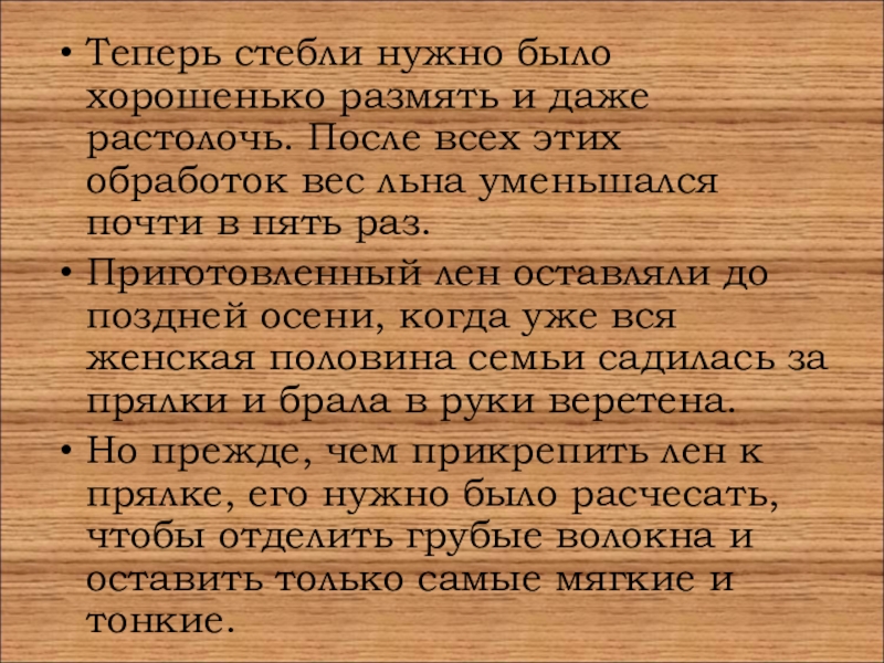 Слайд 28Теперь стебли нужно было хорошенько размять и даже растолочь. После всех